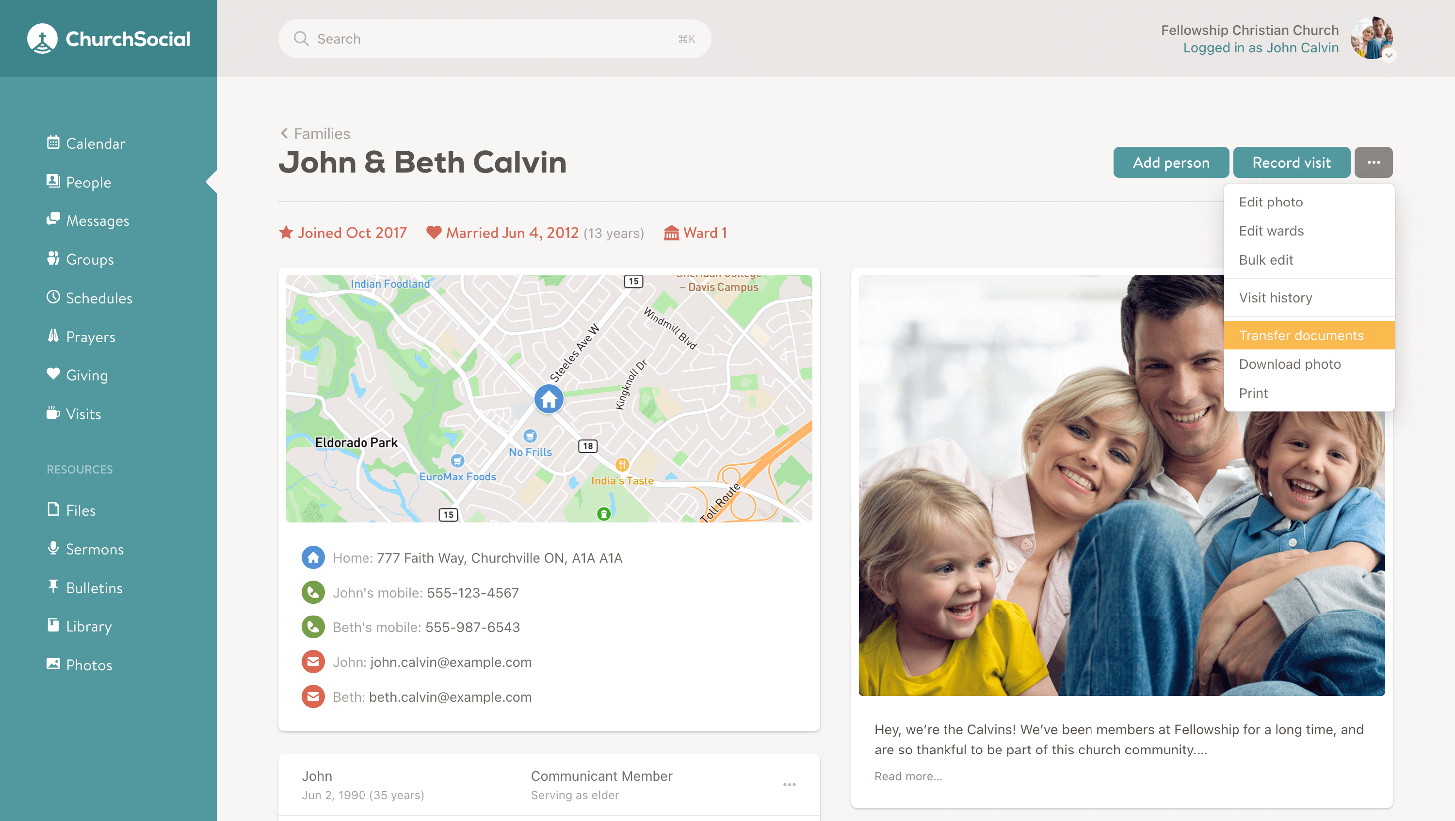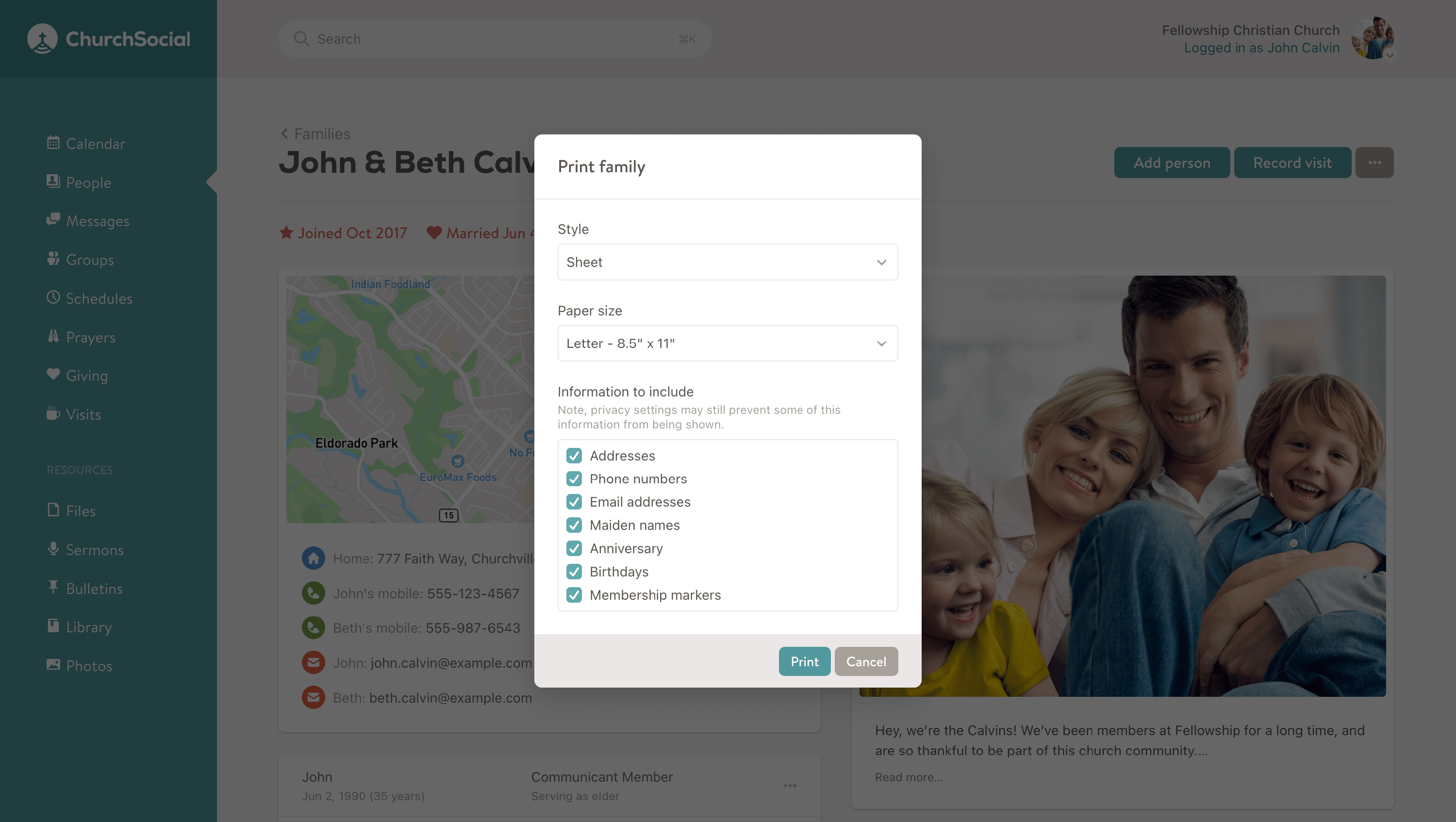 If you require printed member information for office-bearers or others in your congregation, Church Social makes these a breeze to create. Simply download the print-ready family page in the style of your choice and send it to the printer!