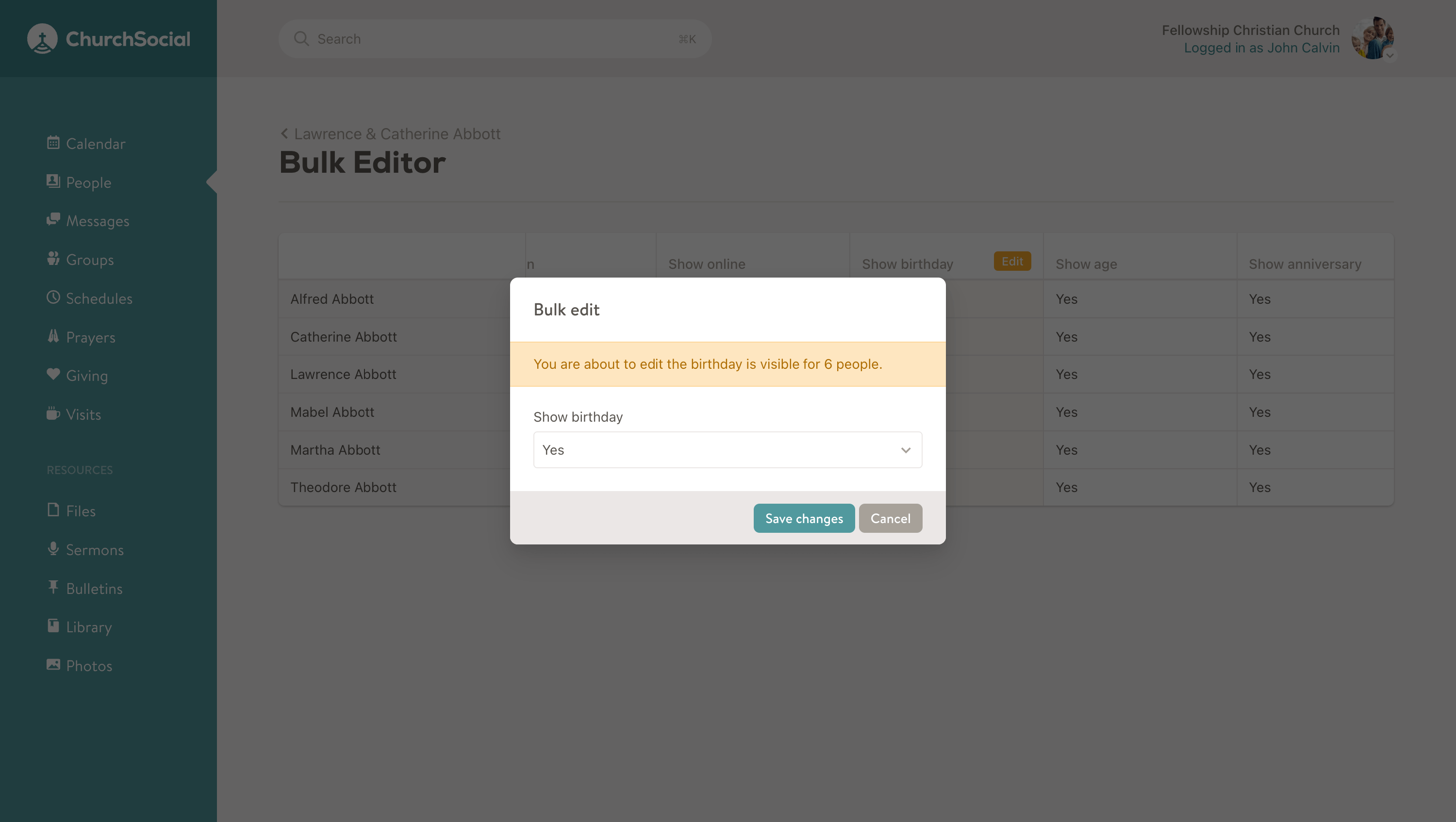 Once you click on the Edit button you will be presented with a Bulk edit dialog that shows you how many people you are editing the data for and allows you to edit the data in that cell.