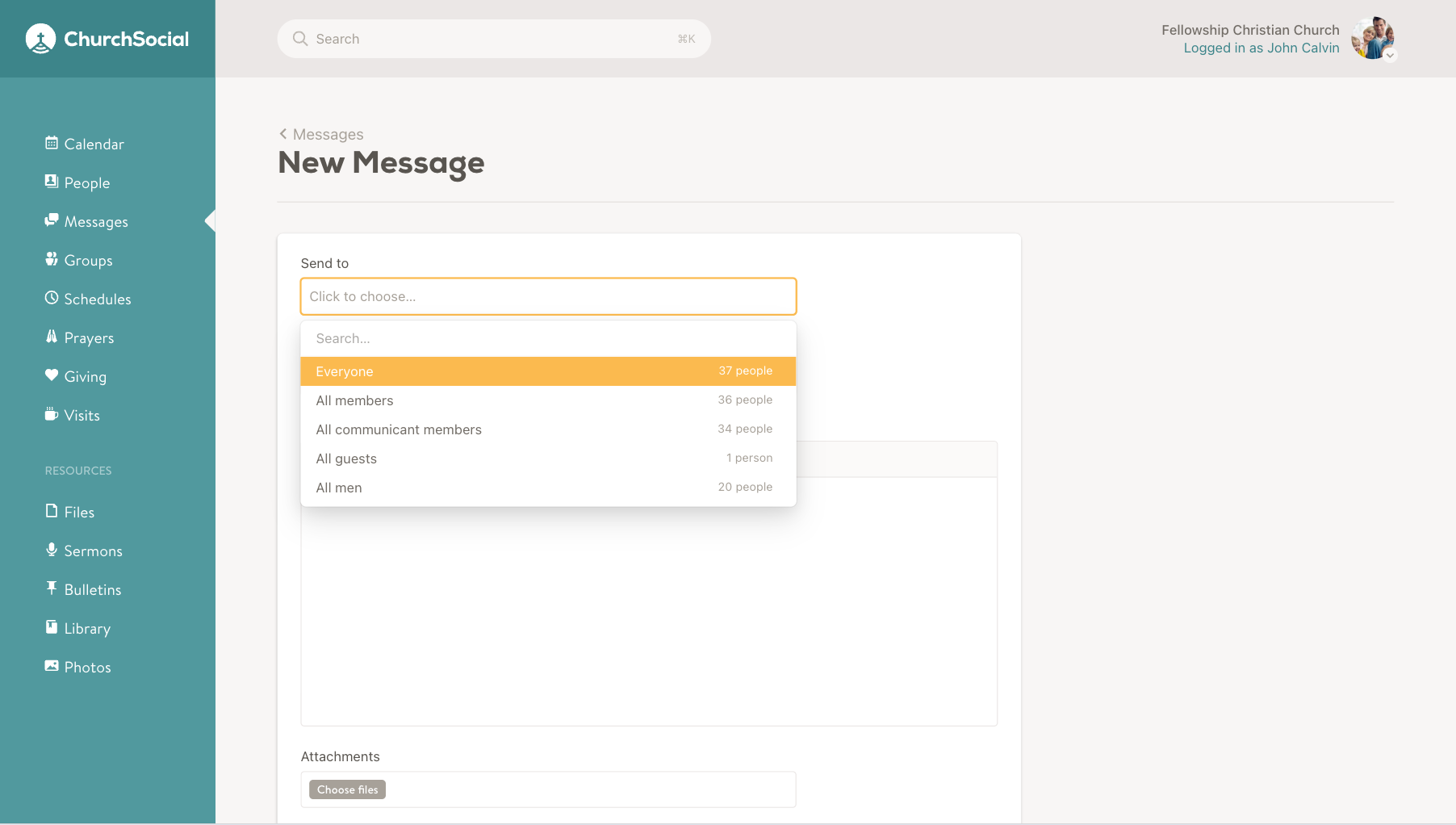 For more information about Church Social's messaging feature, read An Overview of the Messages Module.