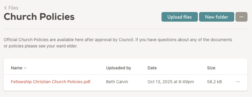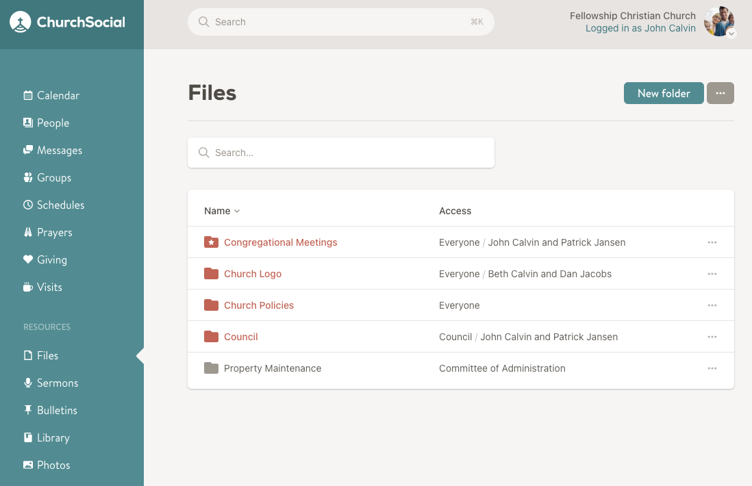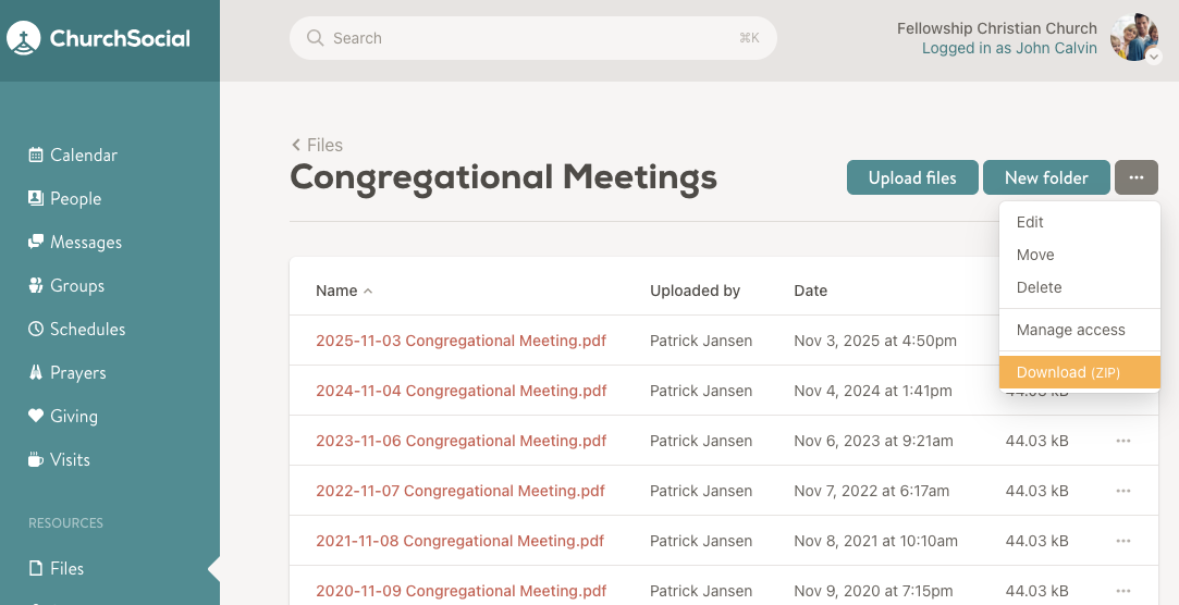 In a world of Dropbox, Google Drive and iCloud, Church Social takes a simpler approach to making files available to your members. No new software required. Simply create folders, set permissions, and upload your files.