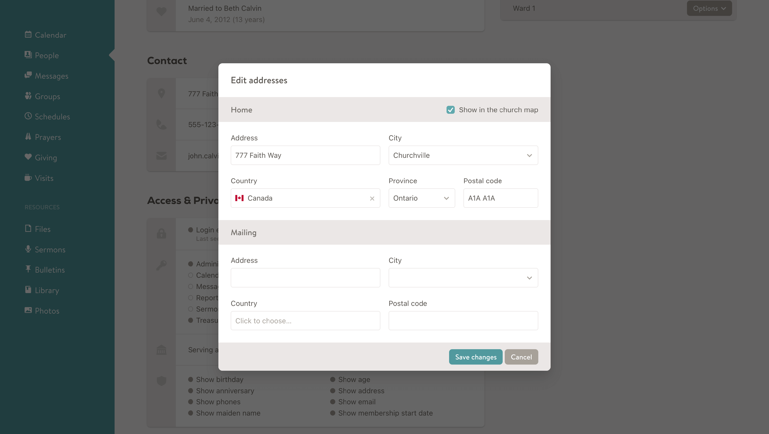 If a mailing address is set for a member, Tax receipts generated through Church Social will use the member's mailing address over their home address.