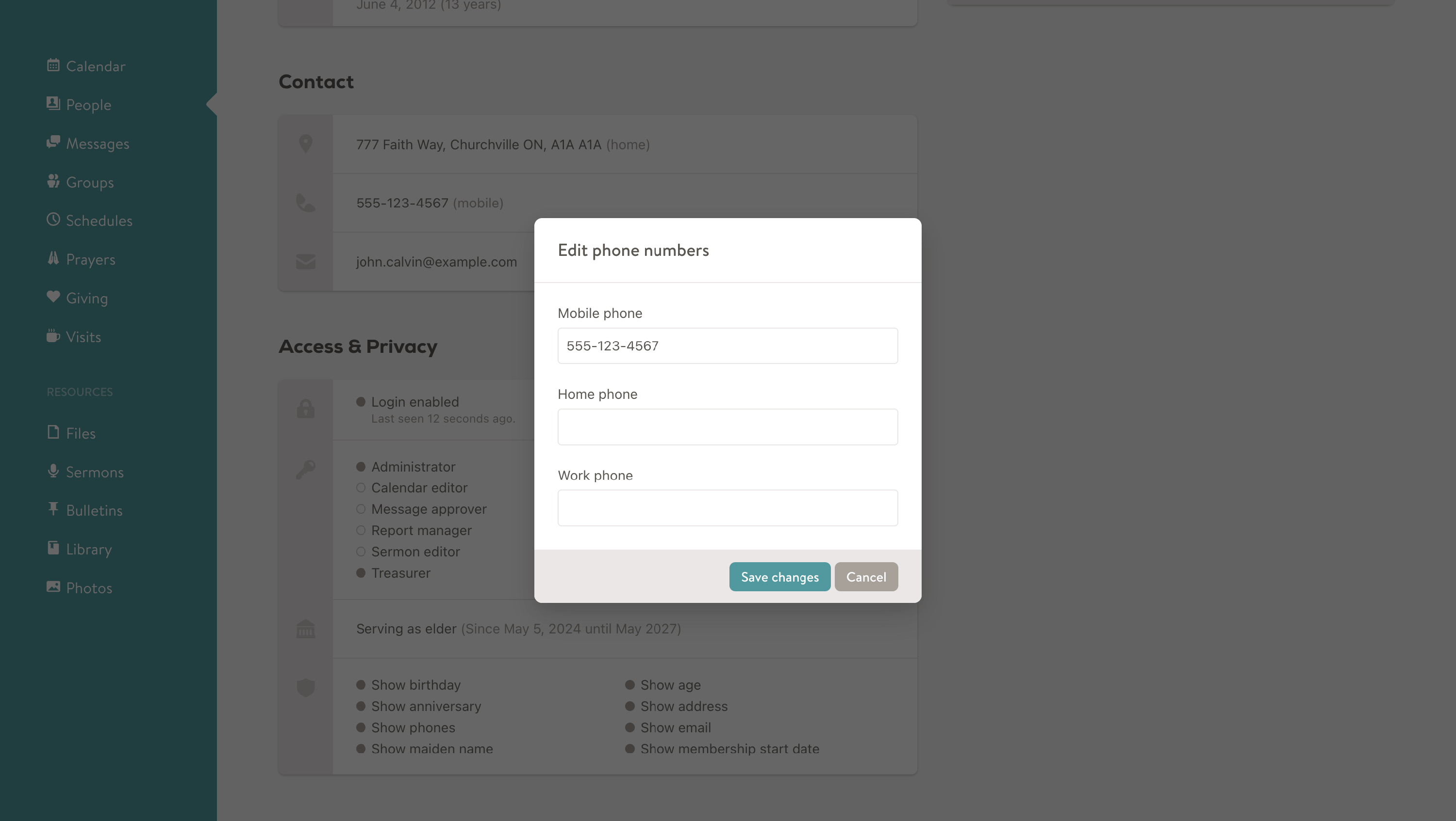 The work phone and mobile phone fields are always member-specific. Unlike the home phone or address fields, these numbers are never shared across a family.